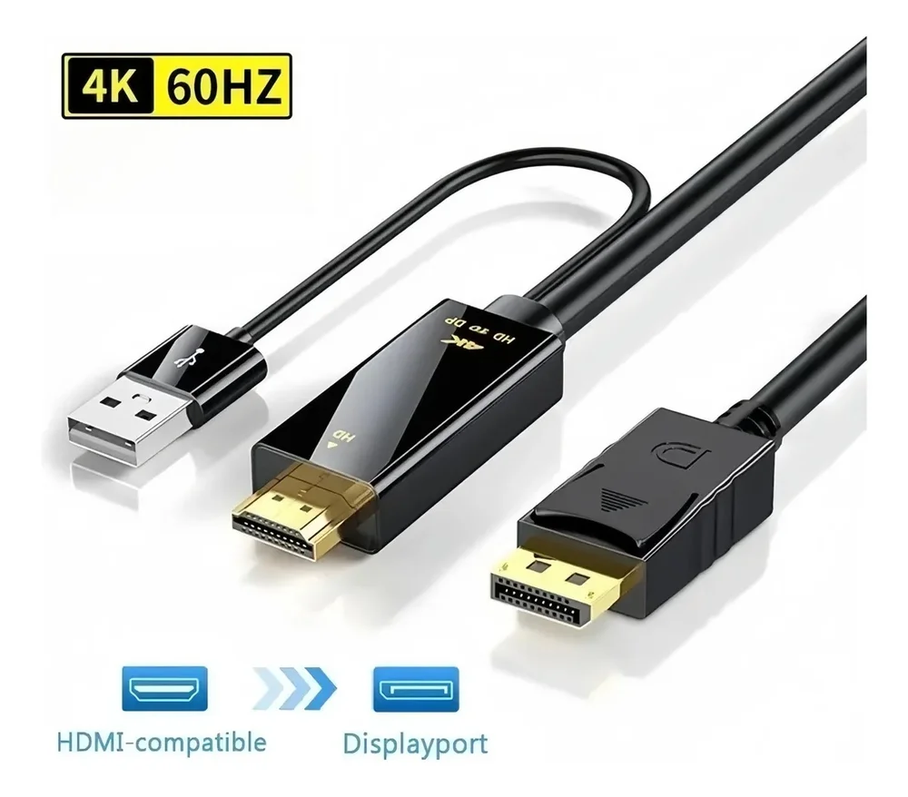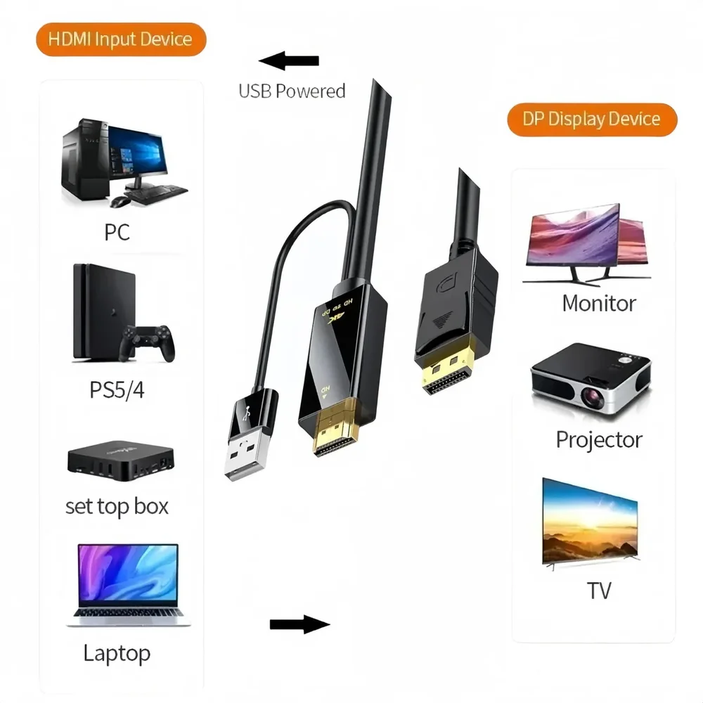 Cabo Adaptador Hdmi 2.0 Para Displayport 1,8m 144hz