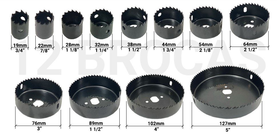 Kit Jogo Serra Copo Para Madeira/Gesso/PVC 16 Peças 19 a 127mm Com Estojo Profissional – MS ECOM