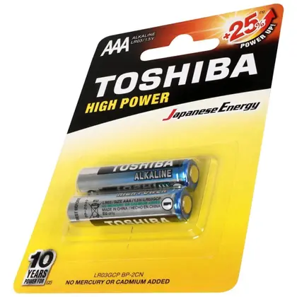 A pilha alcalina da Toshiba foi desenvolvida para garantir longa duração nos mais diferentes aparelhos, principalmente nos que requerem alta drenagem de energia. Além disso, sem adição de mercúrio e cádmio, não agride o meio ambiente.