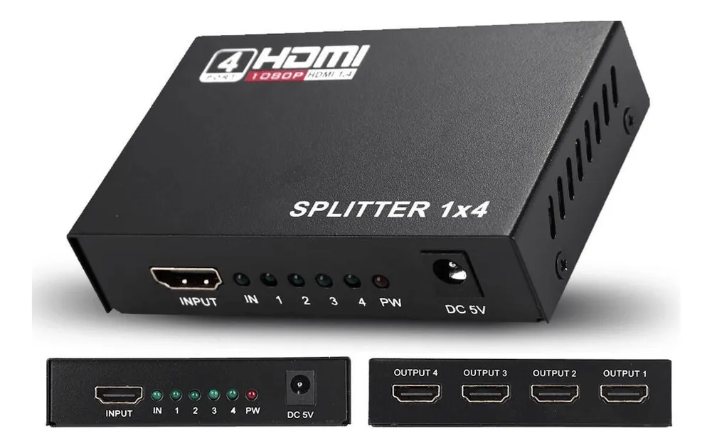 – Splitter HDMI com 1 entrada HDMI para 4 saídas HDMI;